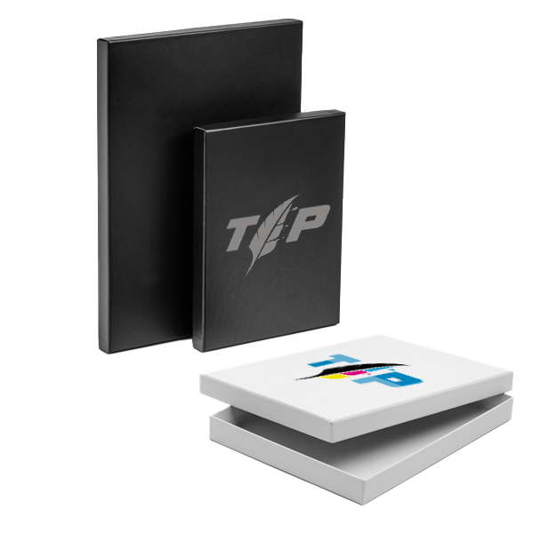 All’interno di questa stabile scatola ad incastro in formato DIN i quaderni per appunti, i planner annuali o i fotolibri stampati avranno un aspetto ancora più pregiato. Questo vale soprattutto se fai personalizzare questa confezione di alta qualità con la stampa del tuo logo. Inserisci la stampa dove preferisci sul cartoncino nero o bianco e regala una gioia ai tuoi clienti e partner migliori: non lo dimenticheranno. Formati: 16,8 x 21,8 x 2,2 cm (per DIN A5), 23 x 30,5 x 2,4 cm (per DIN A4), lati esterni stampabili a 4 colori, area di stampa: 10 x 5 cm o 5 x 10 cm, posizionamento libero, cartoncino grigio da 2 mm rivestito con carta patinata opaca, colori di fondo: bianco, nero. Confezionamento di prodotti o regali, ideali ad es. per libri, quaderni per appunti, blocchi e molto altro, a partire da 10 esemplari.