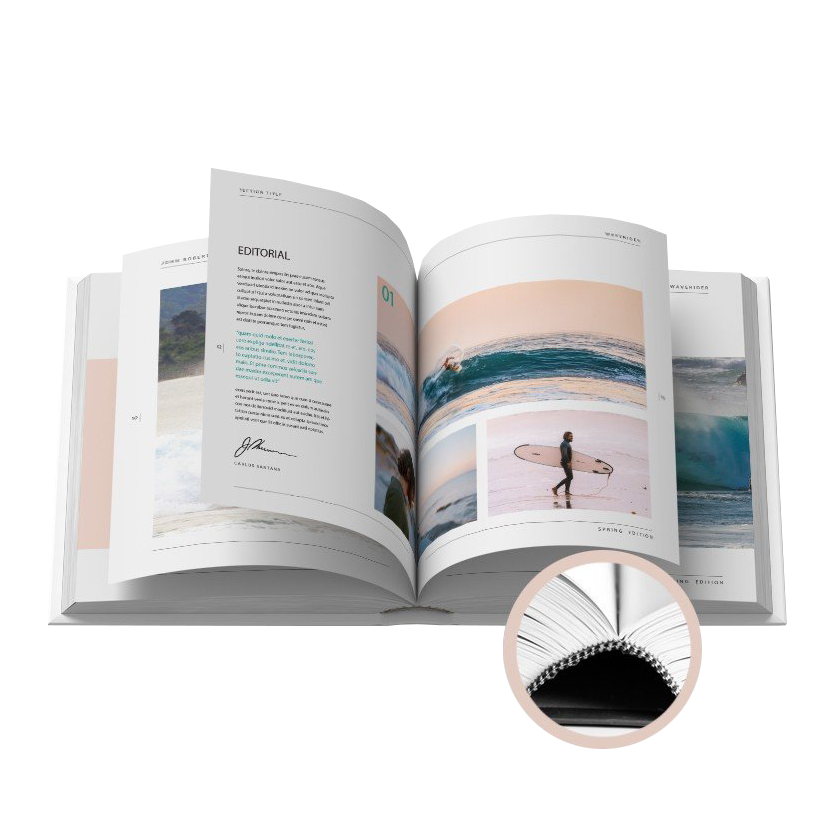Per i tuoi cataloghi un aspetto distinto e originale. La rilegatura più raffinata d'ispirazione artigianale. La brossura cucita è una rilegatura di pregio, perchè resiste all'usura ed è di grande tenuta, ideale per le riviste che vengono spesso aperte e consultate. Scegli la brossura cucita per una rilegatura a lunga durata: la cucitura sul dorso assicura la massima tenuta per prodotti con più di 64 pagine.